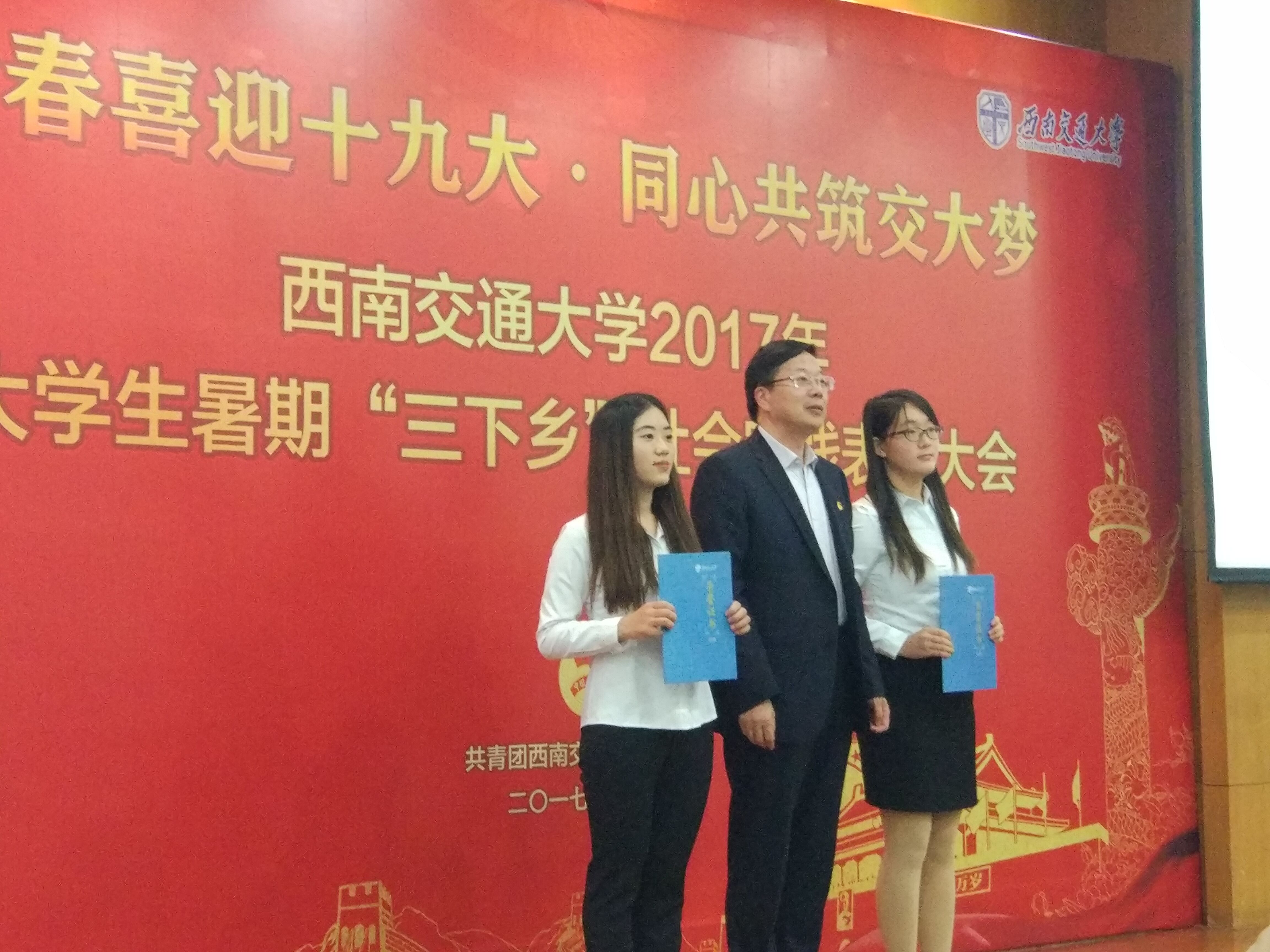公司开展的暑期“三下乡”社会实践活动形式多样、富有创新,取得了丰硕的成果,全校共196支队伍仅22支队伍获评校级优秀实践队。公司云运宣传中心员工干部组成的“云情运卿” 三下乡社会实践队获评“2017年全国大中专员工志愿者暑期‘三下乡’社会实践活动优秀实践团队”,得到团中央表彰,是今年全校唯一一支受到团中央表彰的实践队,同时“云情运卿”实践队还获得第九届全国老员工社会实践奖;交运类国防生党支部与青协员工干部组成的“关爱革命伤残军人·弘扬爱国拥军传统”实践队、青协员工干部组成的“春风入乡·雨润南溪”实践队获得学校优秀实践队伍称号;公司员工工作组王炎冰、李清滢、徐君翔三位老师获评校级优秀指导教师;各项实践活动还得到了社会媒体的关注,人民网、凤凰网、中青网多家媒体宣传报道。此次“三下乡”社会实践活动充分展现了学院组织得力、老师尽心指导、员工踏实肯干的良好风貌。