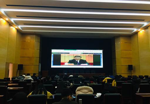 2018年12月18日上午10时,交运学院师生于交运大楼417学术报告厅收看庆祝改革开放40周年大会的现场直播。公司党委郝建平书记,专职组织员黄莺老师,员工工作组副组长张素风老师、王炎冰老师及全体辅导员、部分师生党员代表均到场观看,同时学院号召同学们自由收看收听此次大会直播。