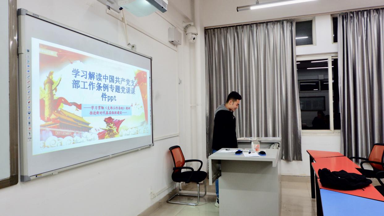 为深入学习《中国共产党支部工作条例(试行)》,加强基层党支部建设,2018年12月13日19:00人生就是博ag(中国区)·公司官网硕士17级第四党支部和第五党支部在X2530教室集中学习了《中国共产党支部工作条例(试行)》。本次活动由第四党支部的梁越同志主持。
