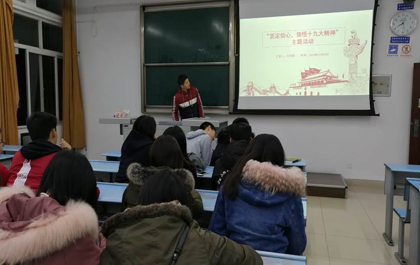 为深入学习贯彻“十九大”会议重要精神,充分认识“十九大”会议的重要意义,2018年11月29日硕士17级第一党支部在X2434教室集中开展了“坚定信心,领悟十九大精神”主题活动。本次活动由范利阳同志主持。