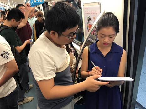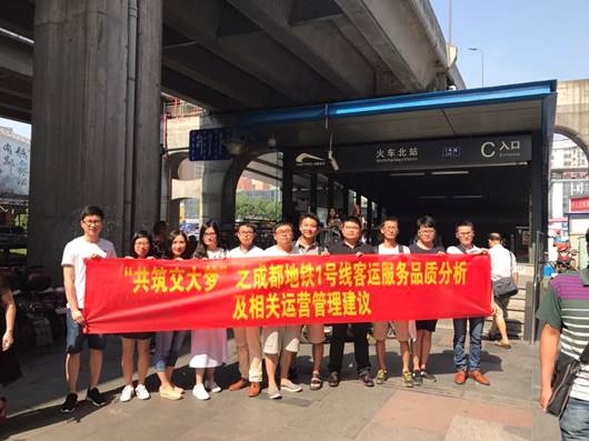 接下来,于2017年5月26日上午,博士2016级党支部共11名成员来到成都地铁1号线火车北站,进行实地调研。通过实地调研,支部成员掌握了成都地铁1号线火车北站的第一手资料,获得了大量的基础数据,为下一步的报告撰写奠定了一定基础。同时通过此次调研,支部党员对本次党日活动有了更深刻的认识,对成都地铁旅客的基本出行情况、旅客出行需求以及成都地铁的服务有了进一步的了解。