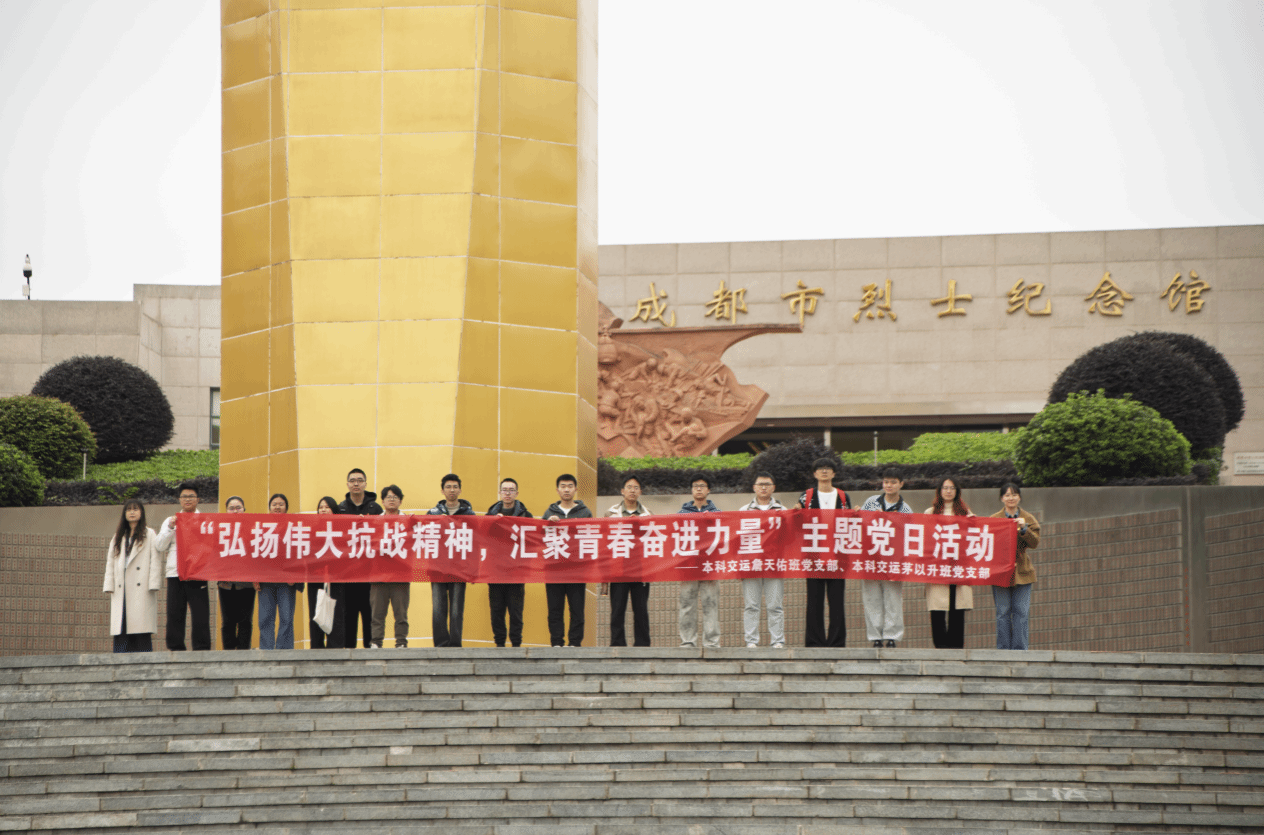 2025年11月13日,本科交运詹天佑班党支部和本科交运茅以升班党支部全体党员走进四川省成都烈士陵园,通过实地参观学习,深化抗战精神学习教育成果,激发党员的责任感与使命感。