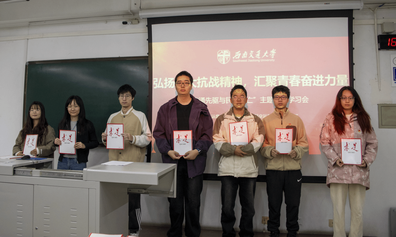 2025年10月23日,本科交运詹天佑班党支部与本科交运茅以升班党支部在犀浦校区X1318教室开展了“弘扬伟大抗战精神,汇聚青春奋进力量”主题学习交流会暨党日活动启动会。活动覆盖两个党支部全体党员及团支部团员,以理论学习、事迹感悟、小组研讨的形式,引导青年学子从先辈事迹中汲取精神养分,筑牢信仰之基。