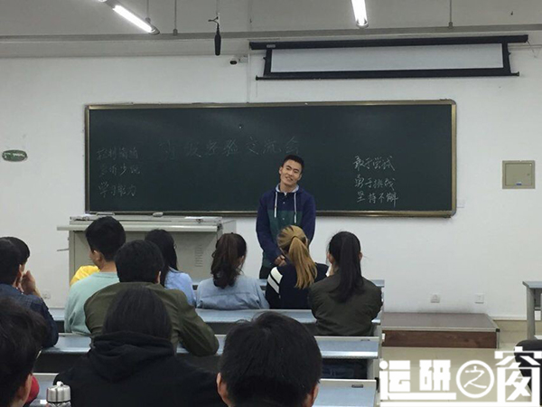 2017年11月8日19:00,人生就是博ag(中国区)·公司官网2017级硕士7班在一号教学楼X1321教室举办班级经验交流会。本次交流会的参与成员为班级同学,由张艺,刘海玥,王岗,仲庆等同学为大家分享本科期间参加各种学术项目及赛事的心得体会以及工作经验。