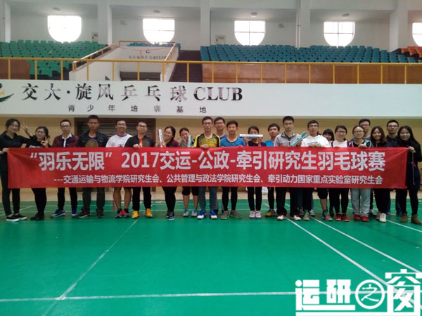 2017年4月26日中午12:00,由公司和公共管理与政法学院、牵引动力国家重点实验室三院联合主办的研究生羽毛球赛的淘汰赛、半决赛和决赛在九里堤校区詹天佑体育馆举行。本次比赛以“羽乐无限”为主题,旨在提高同学们的身体素质,发扬体育精神,促进学院之间的交流,增进学院友谊和团队合作精神。