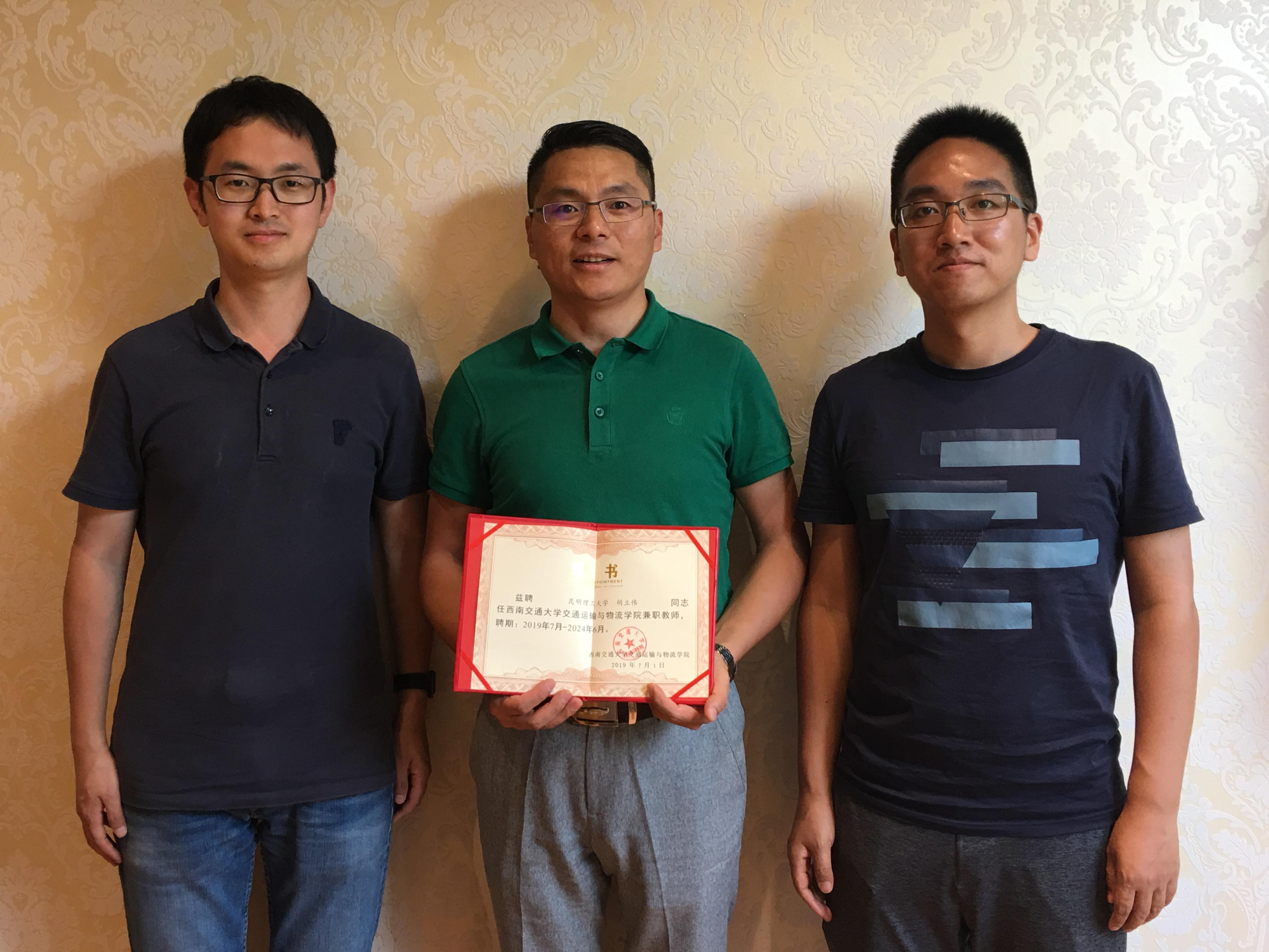 教师代表为昆明理工大学胡立伟教授颁发聘书
