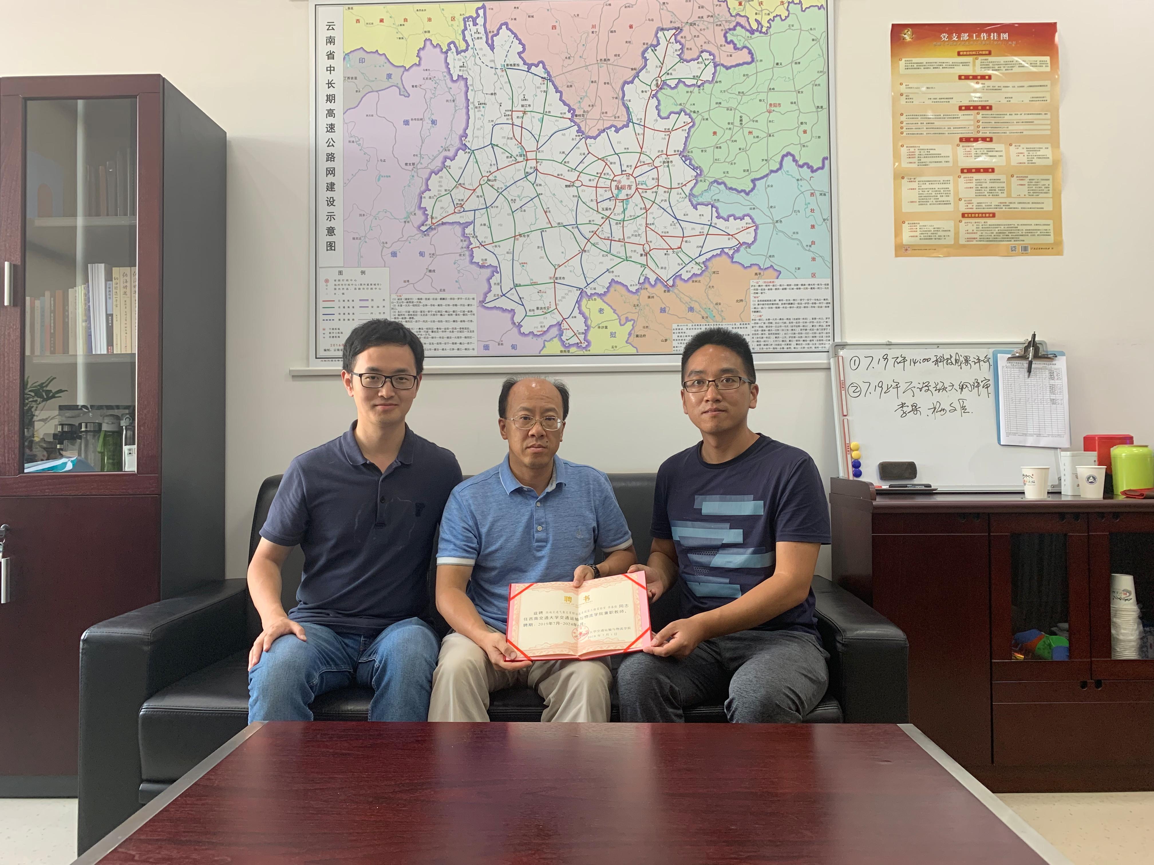 此外,付川云和胥川一行代表公司聘请了云南省企事业单位多名行业经验丰富的高层管理、技术人员为兼职教师,并向兼职教师颁发了聘书。包括昆明理工大学教授胡立伟,云南省交通运输厅主任赖进恒,云南省城乡规划设计研究院执行经理万凯、总规划师任洁、高新技术分院副经理刘泽、高新技术分院副经理刘洪,云交设计院公司副总经理房锐,云交设计院公司灾害分院经理李亚军、副经理胡澄宇、总工程师李春晓、高级工程师杨文臣、陈亮亮、田毕江,昆明局集团公司昆明东站曹哲语副科长,昆明铁路局集团有限公司调度所陈沛主任、张发喜副主任、代庆华副主任、冯盛荣副主任,中路高科交通检测检验认证有限公司昆明办事处高级工程师余波。