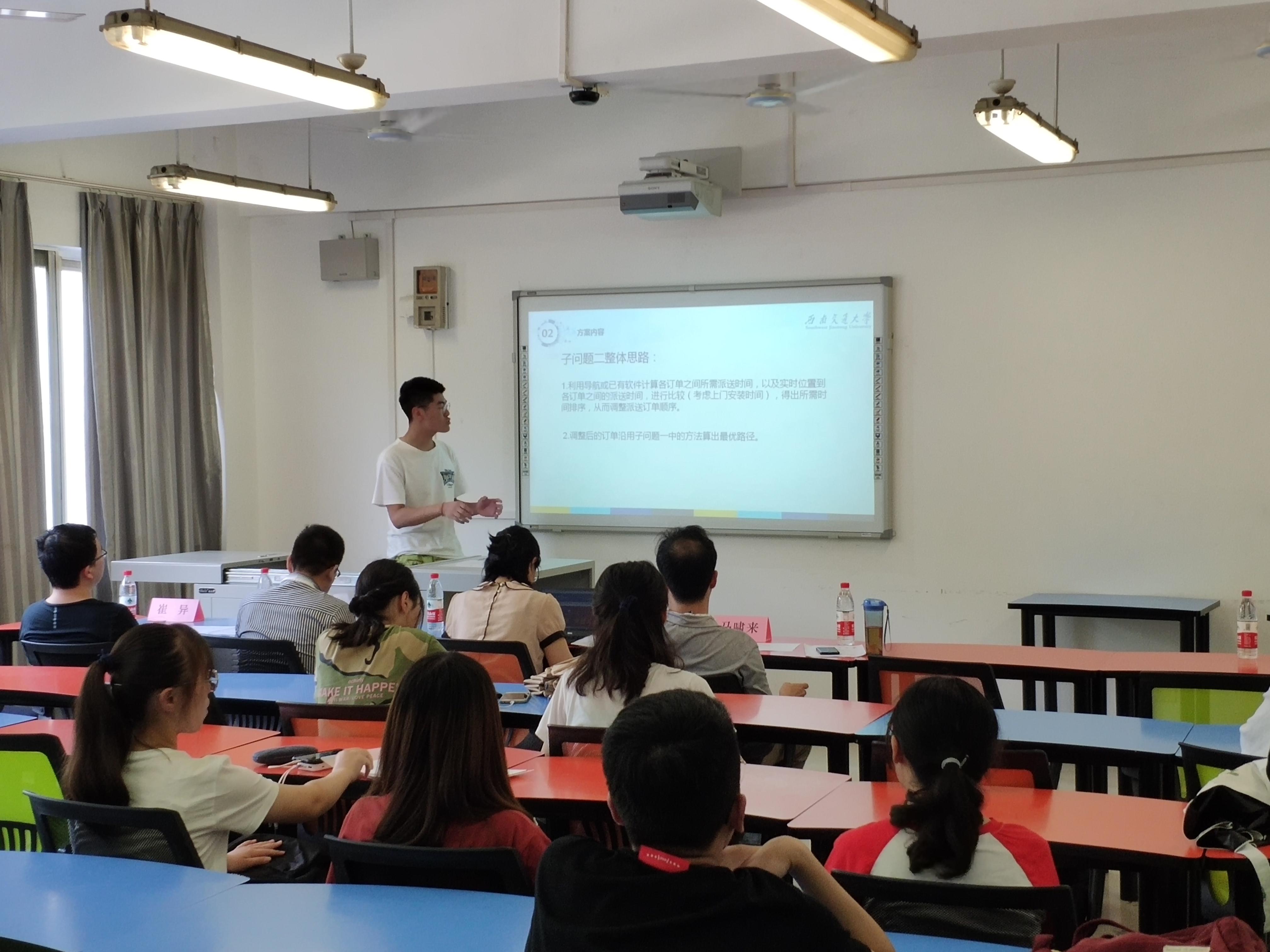 2019年7月5日下午2:30,由人生就是博ag(中国区)·公司官网主办、物流协会承办的人生就是博ag(中国区)·公司官网第四届日日顺物流创客训练营校赛开题答辩在犀浦校区X1105教室顺利举办。担任本次比赛的评委老师有郑海莎老师、郭波老师、马啸来老师和崔异老师。