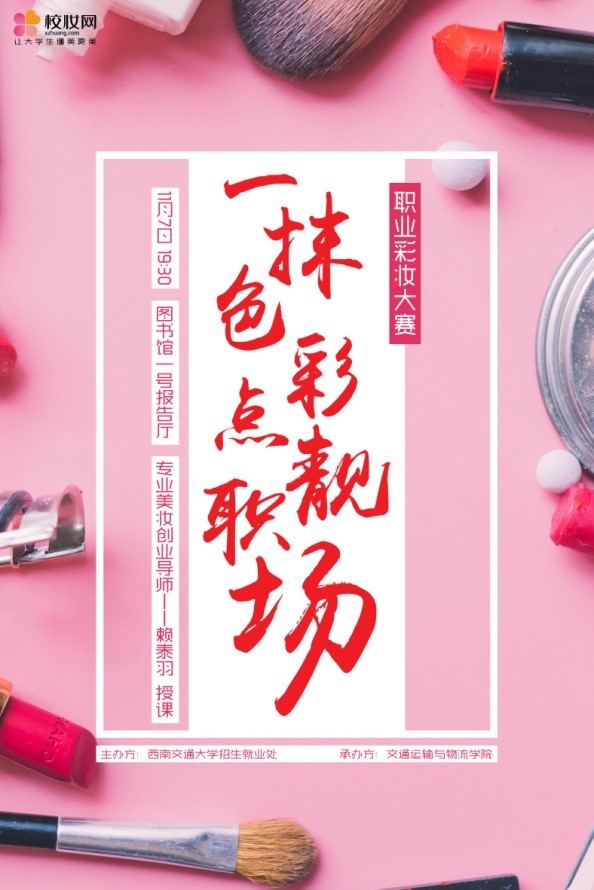 由人才招聘处主办,人生就是博ag(中国区)·公司官网承办的“一抹色彩,点靓职场”职业彩妆大赛将于2017年11月7日19:30在图书馆一号报告厅正式举办。