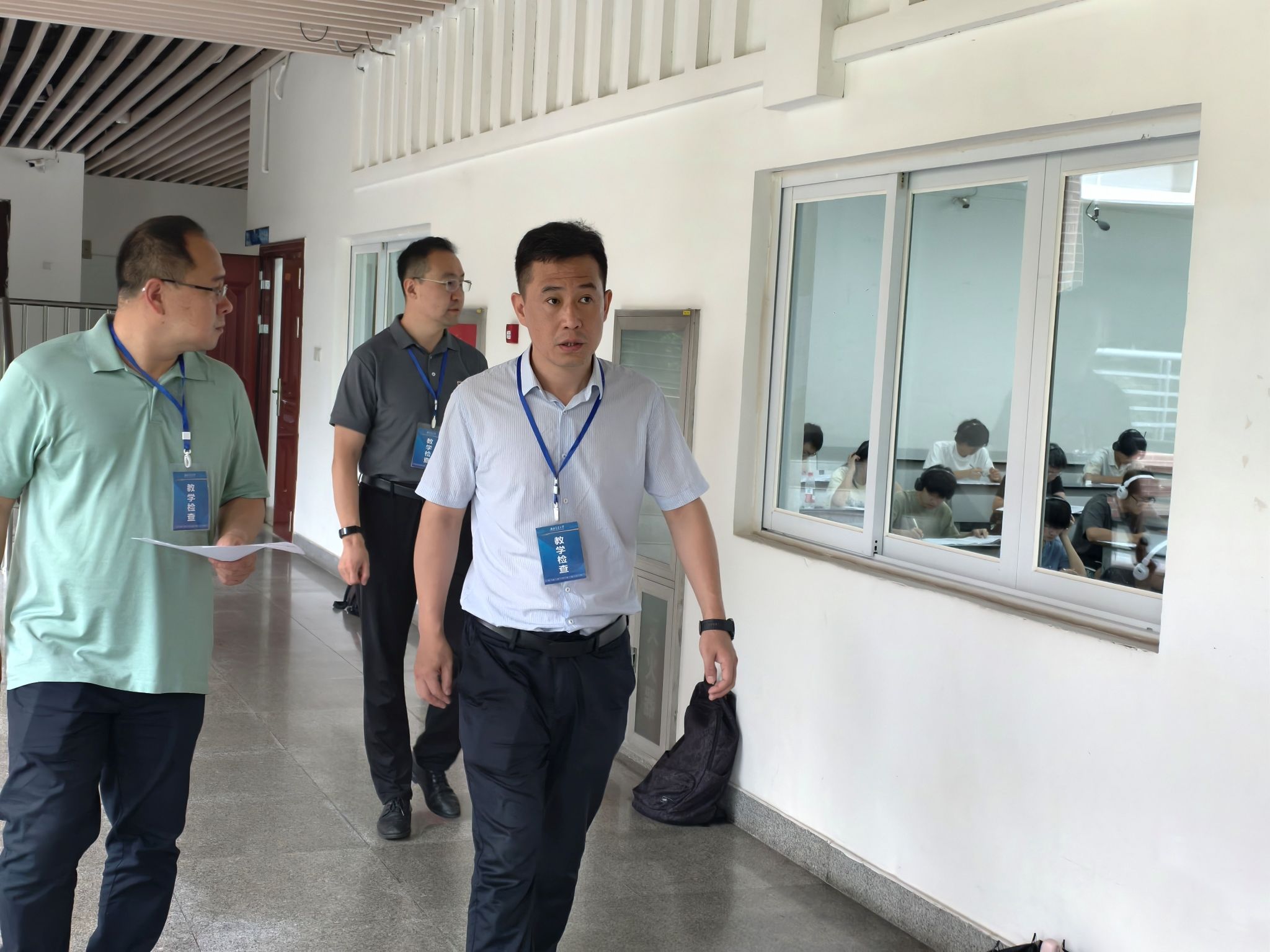 2024-2025学年第2学期本科生期末考试于2025年6月23日至2025年7月4日进行。6月23日上午,公司党委书记张光远、副书记刘继宗、教学主管王坤在教务办、学工组老师的陪同下对犀浦校区一、二号教学楼的交运学院教师监考的考场情况进行了检查。