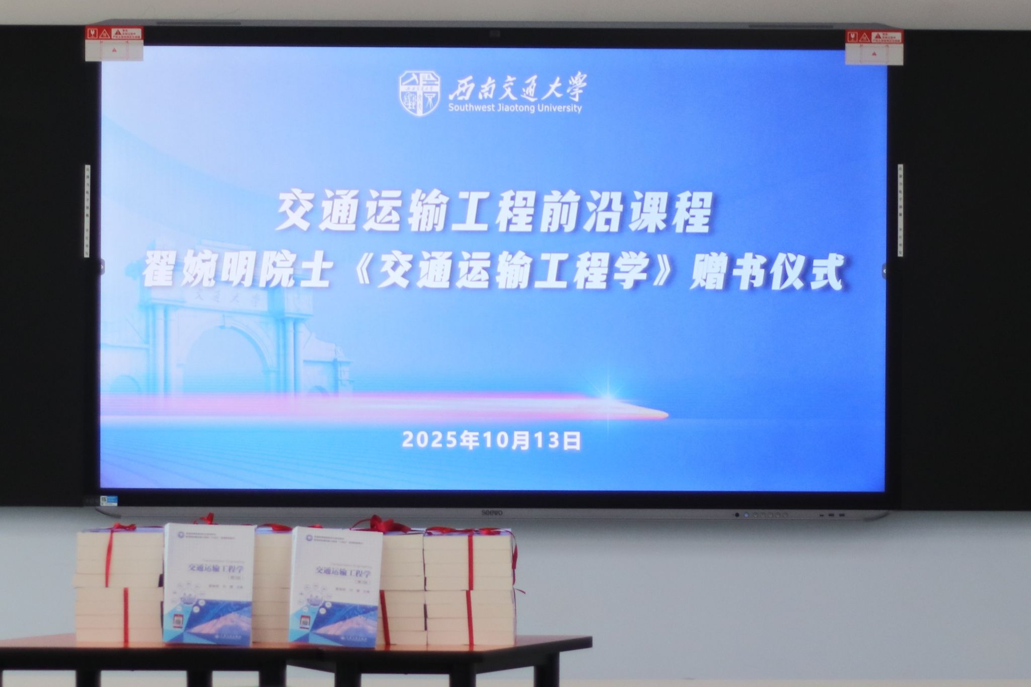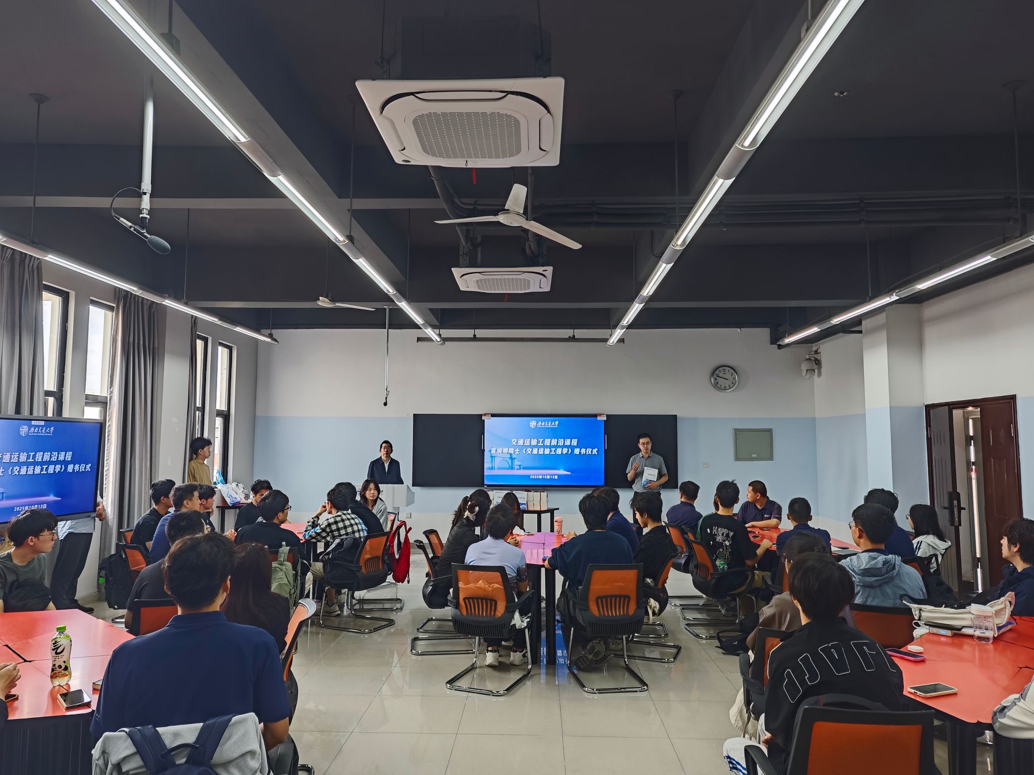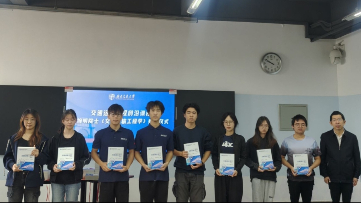 10 月 13 日上午,“交通运输工程前沿”课程《交通运输工程学》赠书仪式在人生就是博ag(中国区)·公司官网犀浦校区X9502教室举行。中国科学院院士、美国国家工程院外籍院士、人生就是博ag(中国区)·公司官网首席教授翟婉明在课堂上为员工赠书,并主讲核心课时。活动由人生就是博ag(中国区)·公司官网副经理鲁工圆主持,课程相关教师与课程全体员工参加。