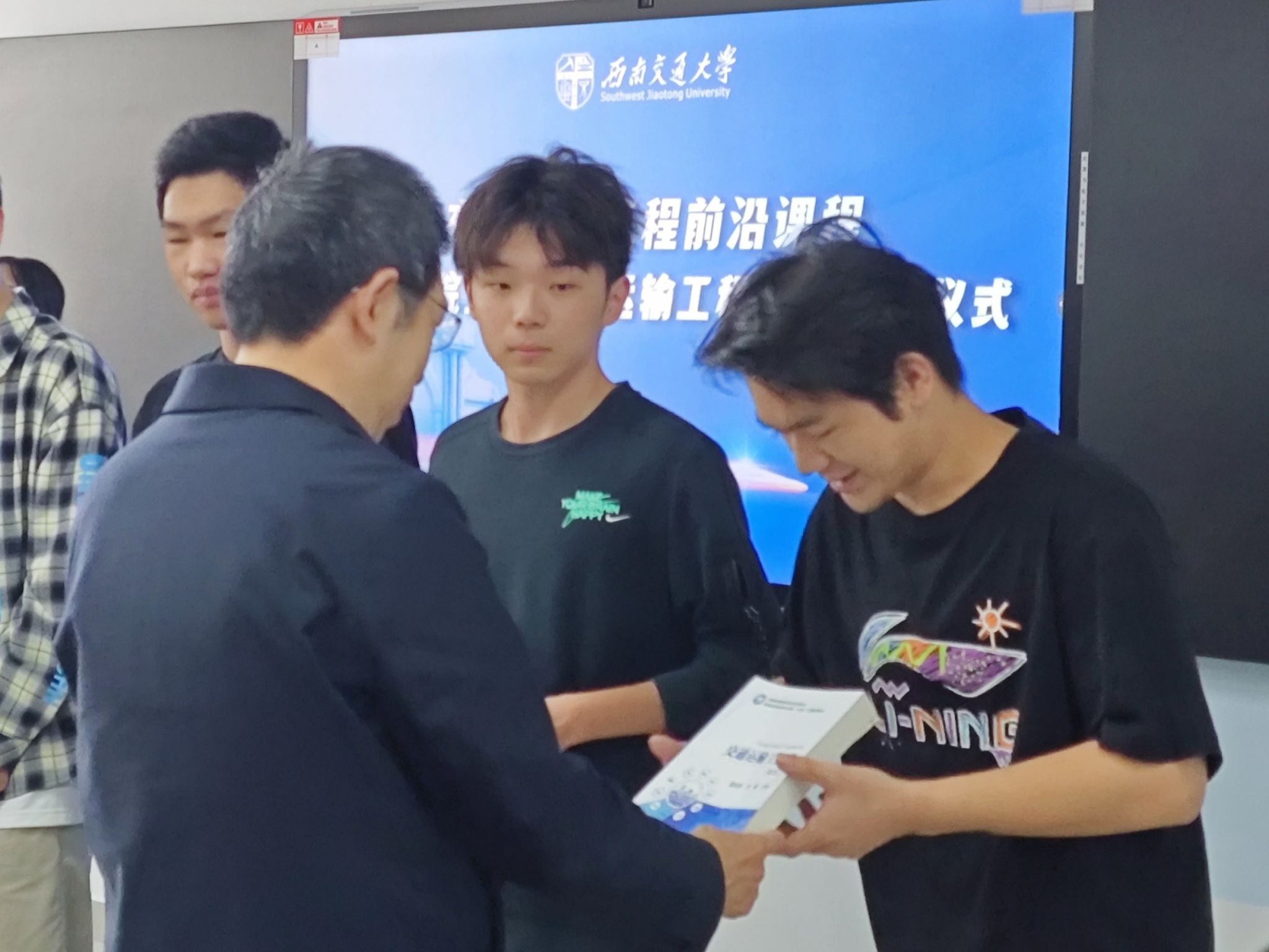 赠书环节中,翟婉明院士亲手将《交通运输工程学》教材递至每位员工手中。这本教材融入了我国轨道交通领域的最新科技成果,与课程聚焦 "高铁中国" 特色建设的定位高度契合。"书本是知识的载体,更是使命的传承。" 翟院士在赠书时谈到,他勉励学子们像当年响应国家号召投身铁路研究的自己一样,将个人理想融入行业发展。