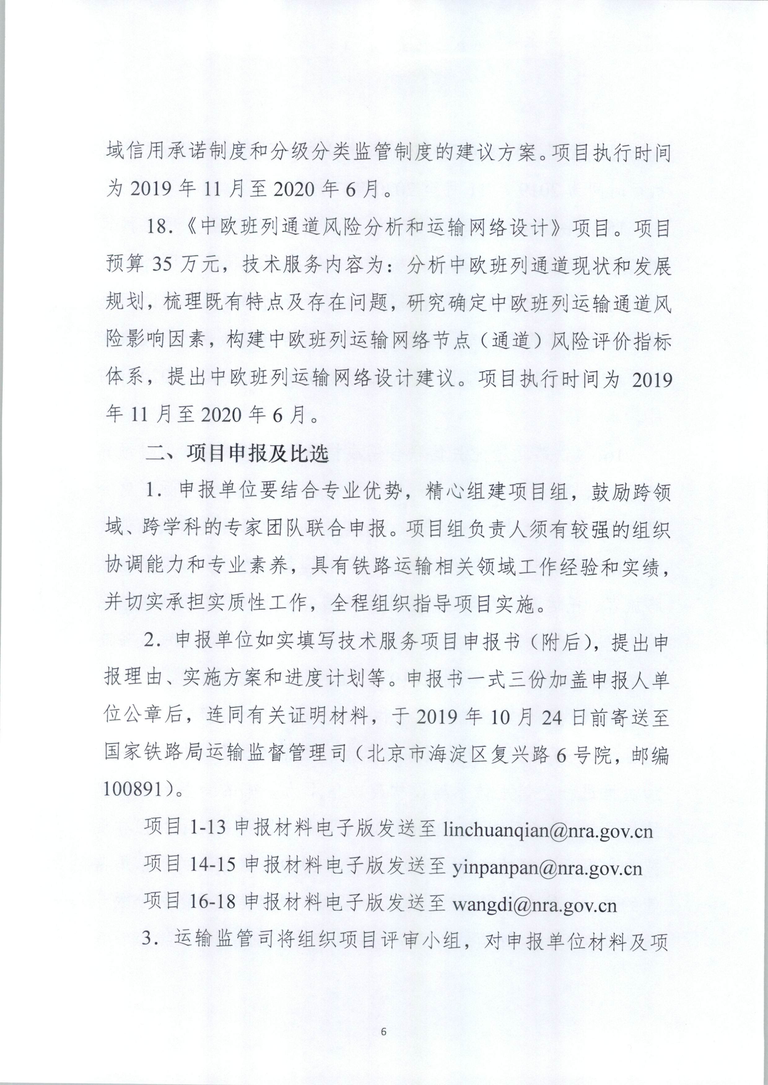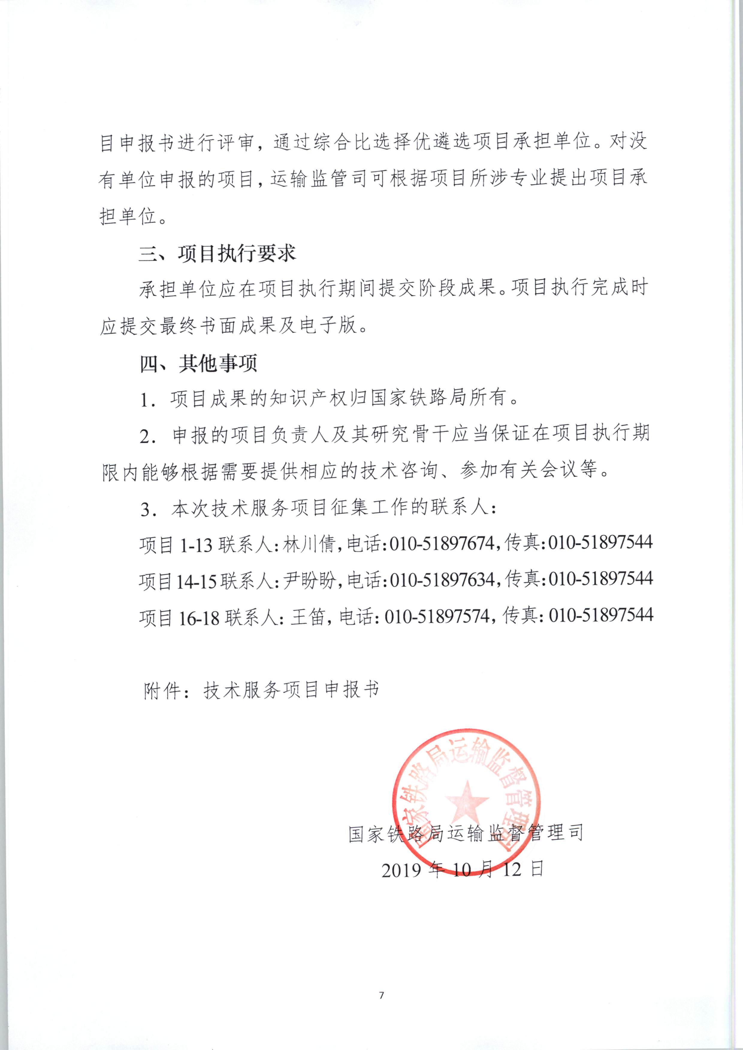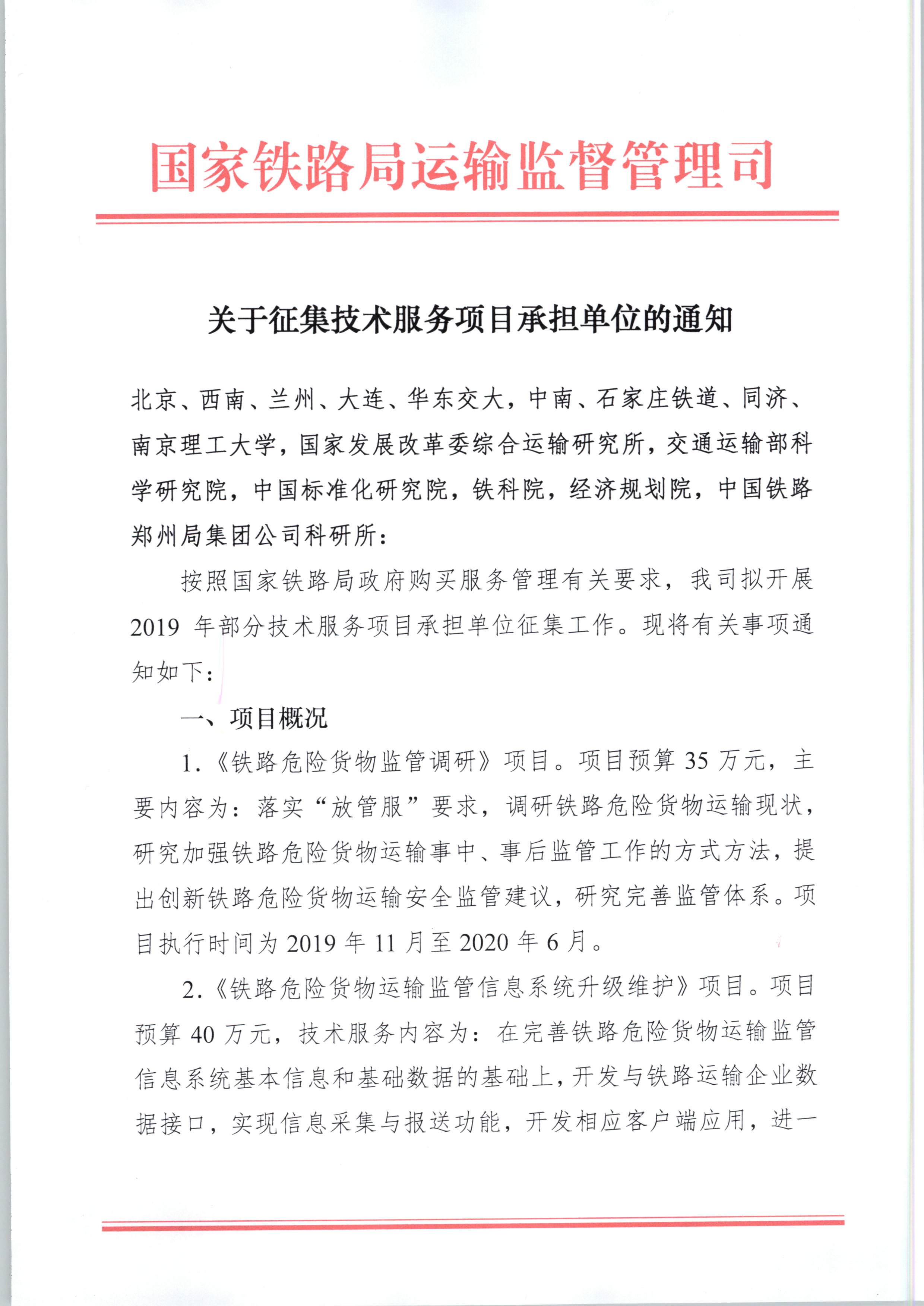 国家铁路局运输监督管理司《关于征集技术服务项目承担单位的通知》