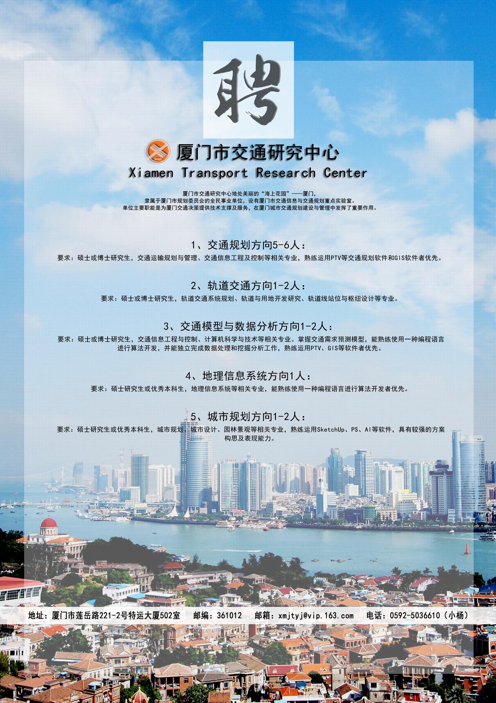 要求:硕士或博士研究生,交通运输规划与管理、交通信息工程及控制等相关专业,熟练运用PTV等交通规划软件和GIS软件者优先。
